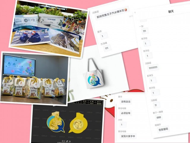 当大家还沉浸在感慨中时,画面中的主持人猝不及防开始了“带货直播”,风趣幽默的话语引得身边的同事发出了阵阵笑声。有什么“居家旅行必备”特制帆布袋,有“戴上就是NO.1”的定制1周年纪念徽章,还有记录着猎奇视频下载时刻的明信片组合等等。直播氛围用时下流行的话来说简直是MAX!就像来到了真正的带货直播间,许多同事都配合地在聊天频道打出了“111”“666”的字眼,小Q我也在聊天框开起了玩笑,嘻嘻。